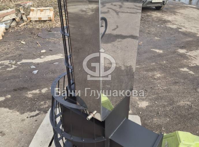 Бак изготовлен из нержавеющей стали 1,2 мм. Сама печь изготовлена из чёрной стали