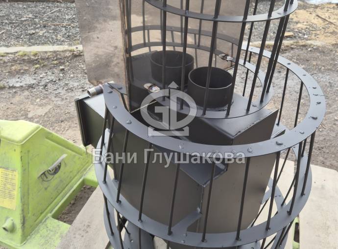 Мощная бюджетная печь для бань и саун с баком для воды и двумя каменками. Топится дровами или топливными брикетами.