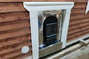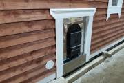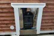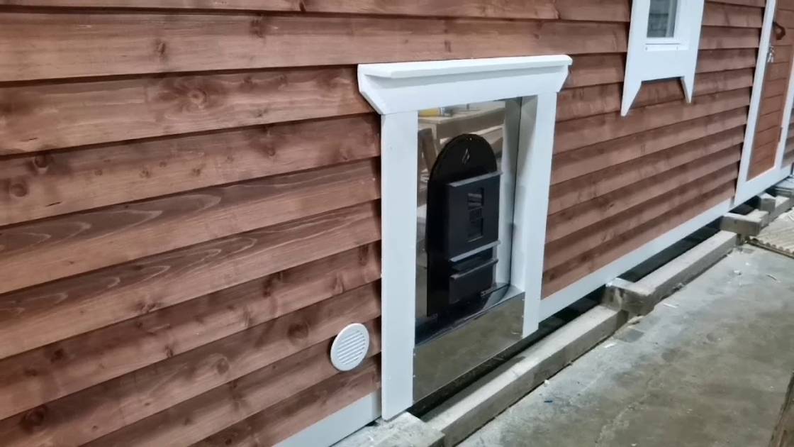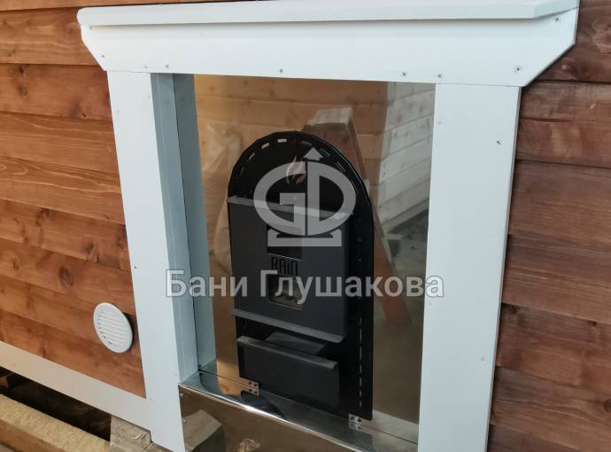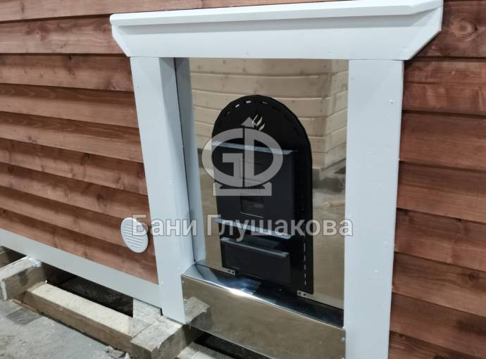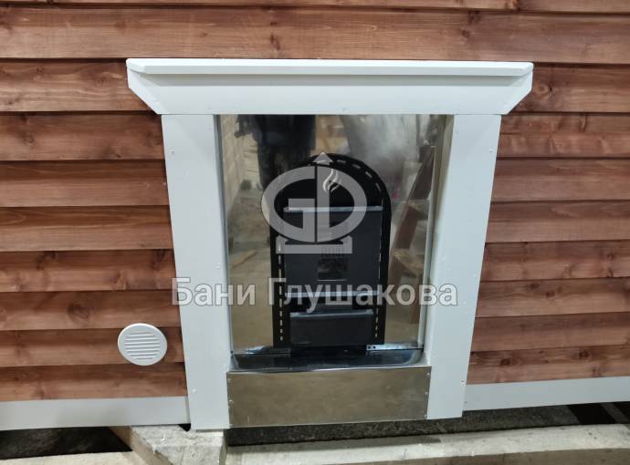 Топка с улицы делается пока только с одной печью, Костер Рейн, проход через стену делается экраном из нержавеющей стали и он утеплен, смотрите фото и видео.