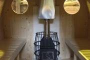 Печь оснащена внутренней закрытой ёмкостью, куда закладываются камни. Это позволяет нагревать камни до 400-500С. Тогда получается мелкодисперсный перегретый пар, который легко переносится и не так экстремально повышает влажность в парной. Подробнее о моделе.