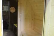 Можно установить насосную станцию, бойлер, бак, душ, устанавливается как в душевой комнате так и в маленькой бане, но уже слева или с права в комнате отдыха, а душ выводится в этом случае в парную.