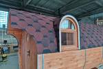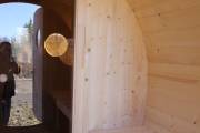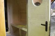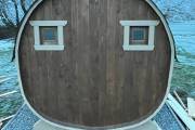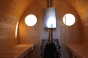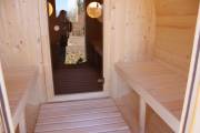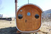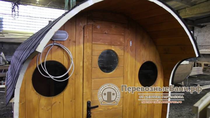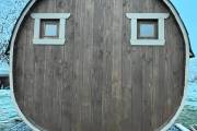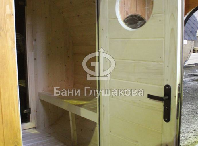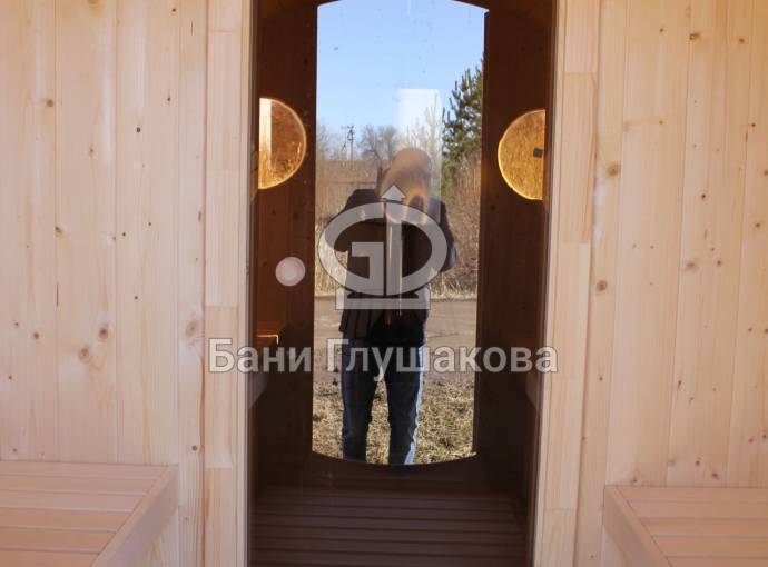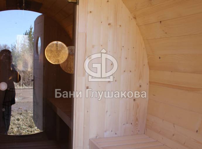 Особенности линейки заключаются в ее необычной конструкции: круглая крыша в сочетании с плоским полом — нетипичная форма для бань в виде бочек. Также в этой линейке мы постарались решить проблему недостатка естественного света в перевозных банях: с лицевой и задней стороны мы сделали по 2 окошка (не считая окно в двери — это опционально). На фото интерьера вы увидите, как это преобразило внутреннее пространство бани.