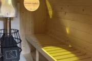 Можно установить один или более светильник у входной двери бани бочки снаружи, подробнее по ссылке, в комплект входит покраска его в цвет окантовки бани, подключение на отдельный выключатель, светодиодная лампа. Стоимость 1700 рублей за штуку