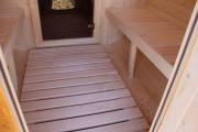 Делается бесплатно во всех баня без террасы, так как мы отвечаем за все элементы бани и не хотим чтобы входная дверь пришла в негодность из за отсутствия навеса.
