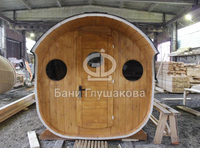 Стараясь расширить ассортимент и удовлетворить самые взыскательные запросы клиентов, мы прислушиваемся к вашему мнению. Было сказано: «В банях бочках мало естественного света!» Мы прислушались и оснастили новую баню аж 4 окошками, а в дополнении установили деревянную филенчатую дверь с круглым окном-иллюминатором.