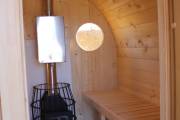 Можно установить один или более светильник у входной двери бани бочки снаружи, подробнее по ссылке, в комплект входит покраска его в цвет окантовки бани, подключение на отдельный выключатель, светодиодная лампа. Стоимость 1700 рублей за штуку