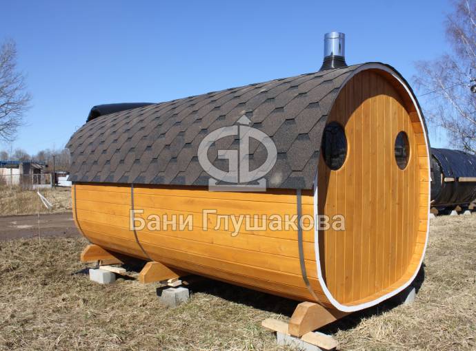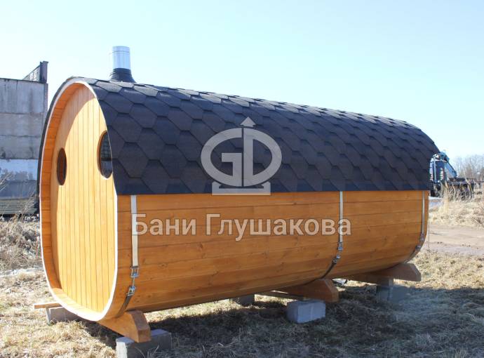 Внешний диаметр бани бочки 2.1м, внутренний размер 2.02м