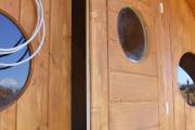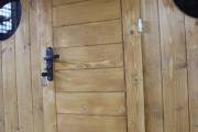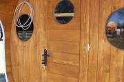 Дверь с наплывом, резиновыми уплотнителями, замком, окно по желанию, форма двери закругленная сверху и снизу, смотреть подробнее тут, или на видео