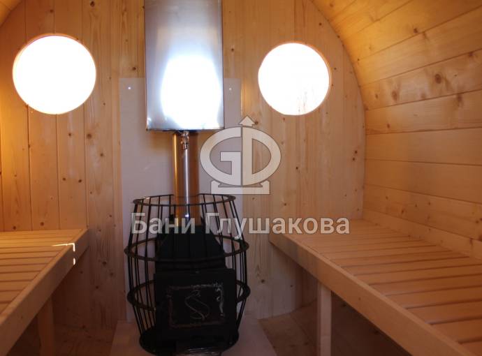 «Пятачок» — это прекрасный образец сочетания дизайнерской мысли, функциональности и безукоризненного качества сборки. Благодаря наличию окошек с лицевой и задней сторон бани, внутри много естественного света — посмотрите фотографии, сделанные в парной!