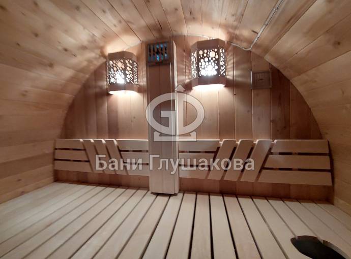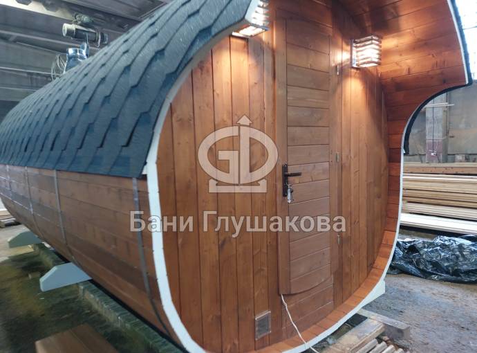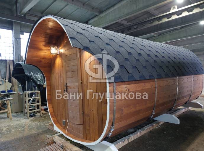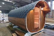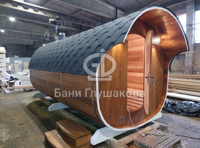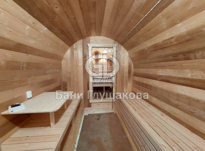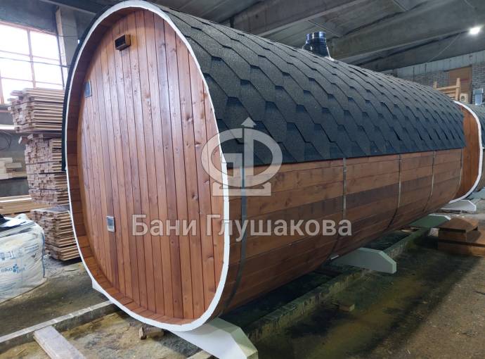 Первая баня-бочка «Пятачок» из термомодифицированной древесины №82400227 изготовлена 29 февраля 2024 года.