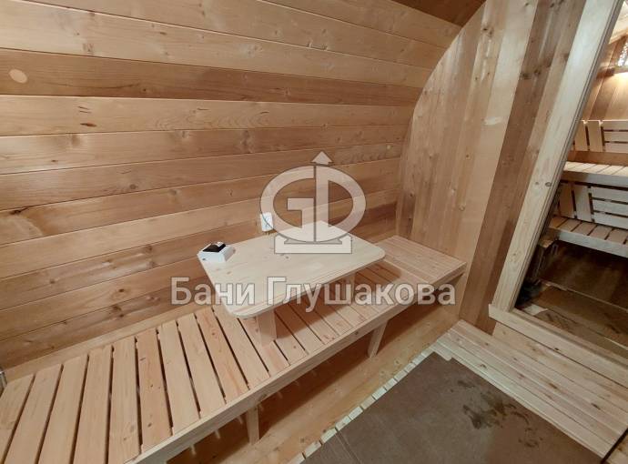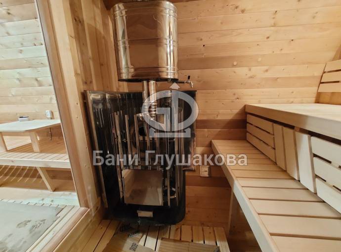 В стоимость уже входит сборка, крутейшая печь нашего производства «ГИД 4» с закрытой каменкой и парогенератором, электрика, металлические уличные светильники, ступеньки. Вокруг печи стоит металлический экран. Установлены металлические комплектующие из нержавейки: вентиляционные клапаны-задвижки, крепления для проводки, наличник на форточку и порожек между помещениями. В парной отличная вентиляция – «Димасту» и «Второе дыхание». Ступеньки тоже уже входят в стоимость.