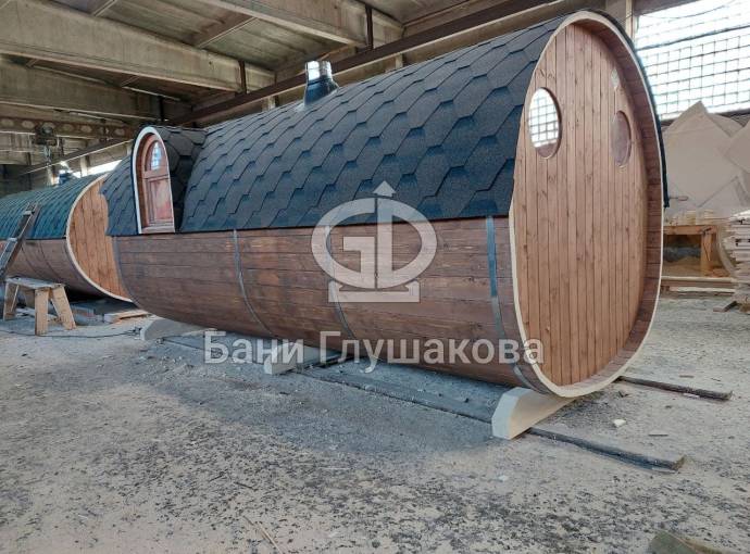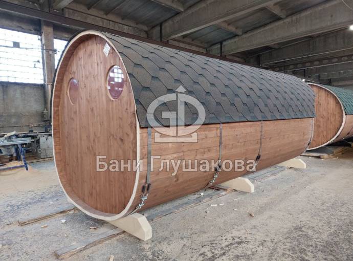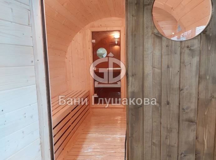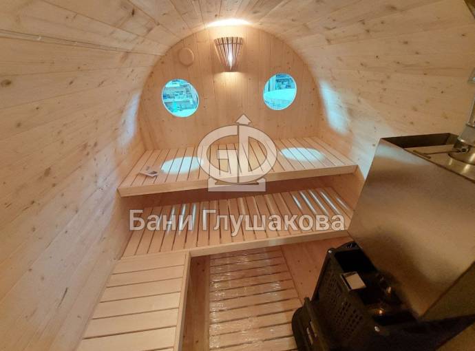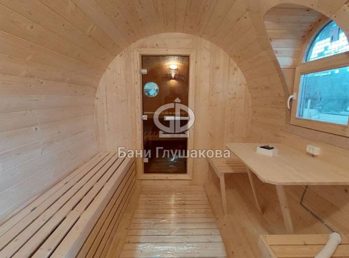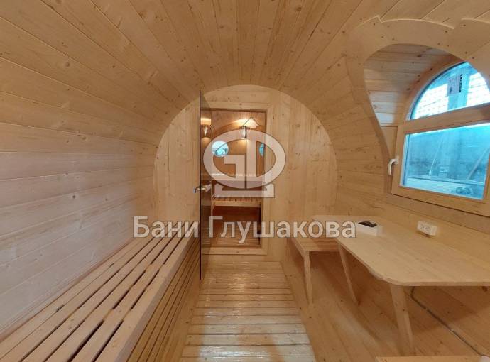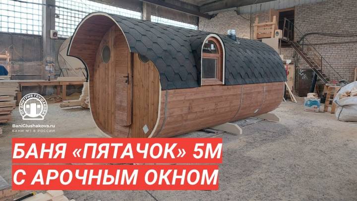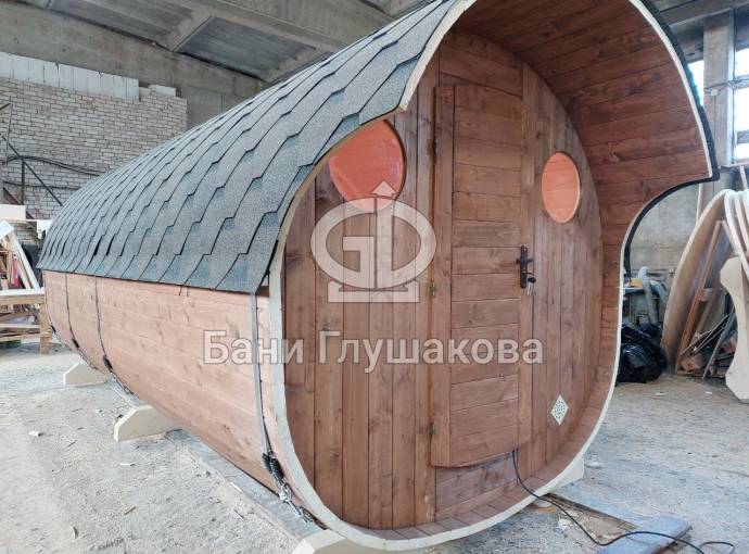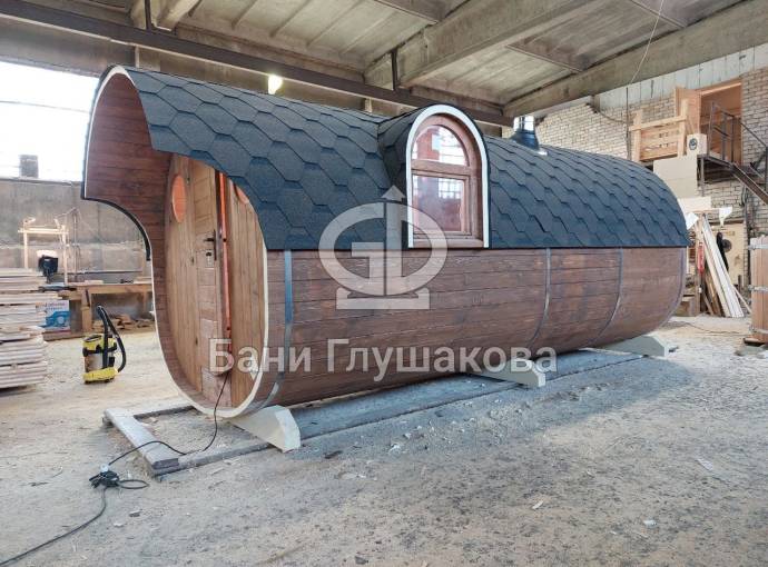 Баня-бочка «Пятачок» 5м с арочным окном №82100083
