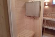 Можно установить насосную станцию, бойлер, бак, душ, устанавливается как в душевой комнате так и в маленькой бане, но уже слева или с права в комнате отдыха, а душ выводится в этом случае в парную.