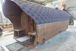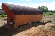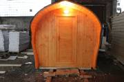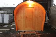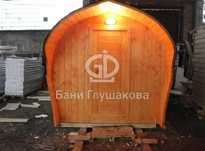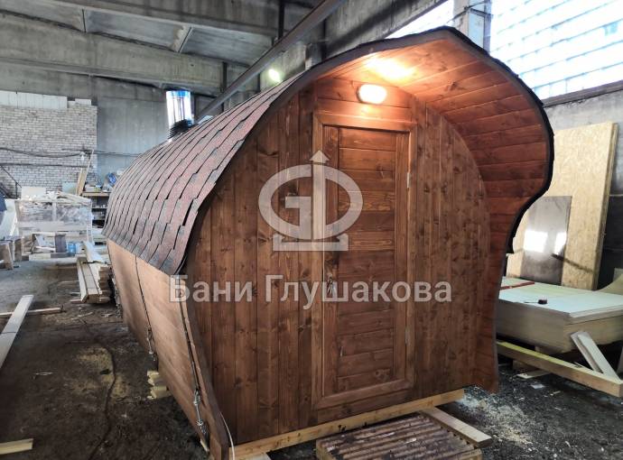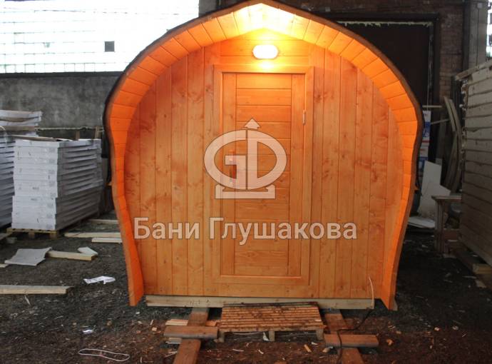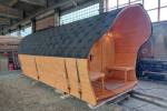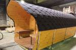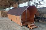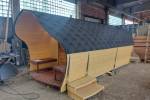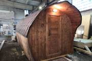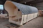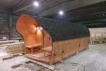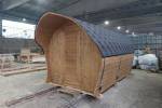 «София» — линейка необычных перевозных бань куполообразной формы. До недавнего времени собирали только 5-метровые модели. По запросу клиента построили первую маленькую баню в размере 3,5 метра. Тот же узнаваемый силуэт, та же тщательность сборки, аккуратная отделка снаружи и внутри и полная комплектация с печью.