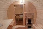Входит в стоимость. Включает светильники в каждом помещении, вводный автомат, негорючий провод в парную, розетка в комнате отдыха (в банях-бочках розетка устанавливается по требованию).