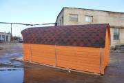 Терраса под козырьком 0,7м, скамейки входят в стоимость. Пол террасы изготовлен из специальной перфорированной доски, пропитан защитным составом.