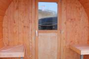 Изготовлена из еловой сухой бочковой доски 42 мм. Снаружи покрашена защитным составом Pinotex с добавлением колера «Клен».