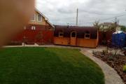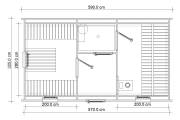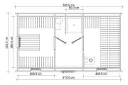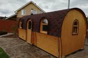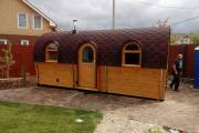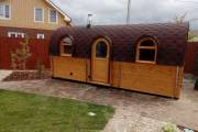 «Сундучком» эту баню язык не поворачивается назвать. Это «Сундучище»! Баня не перевозная, сборка осуществлялась на участке. Размер 3х6 метров. По площади - это полноценная баня с большой зоной отдыха 3х2, такая же большая парилка 3х2, очень большая душевая кабинка и просторный вход с удобным подходом к печи (пока топишь баню - не пачкаются остальные помещения, это очень практично и удобно).