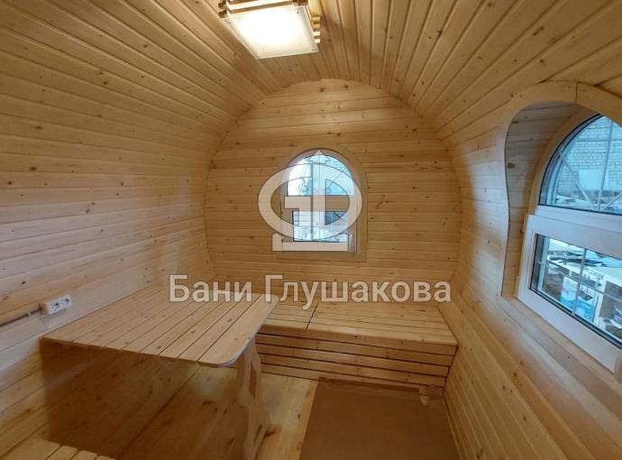 Внутри 3 отделения: комната отдыха, парная, душ.
