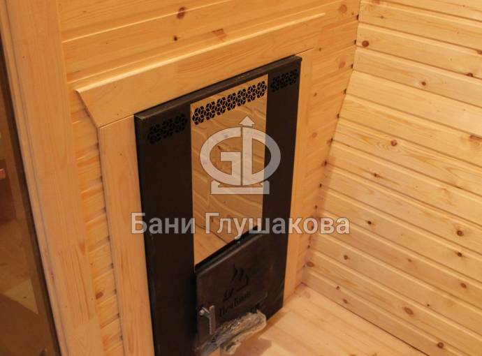 Если делать выносную топку из парной, то доплата составит 6 000 руб, если делать вынос топки на улицу, то дополнительно ставится экран и доплата составит ещё 6 000 руб.
