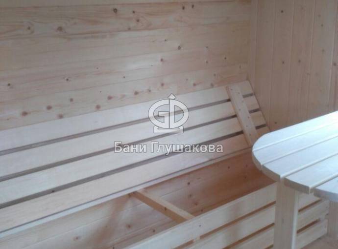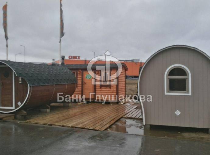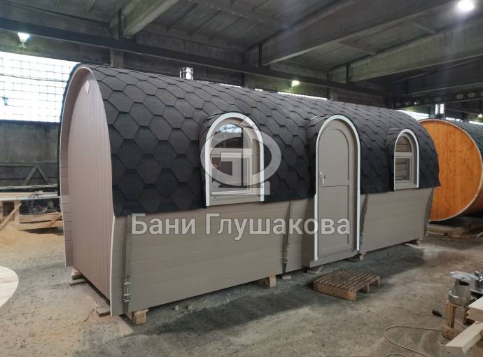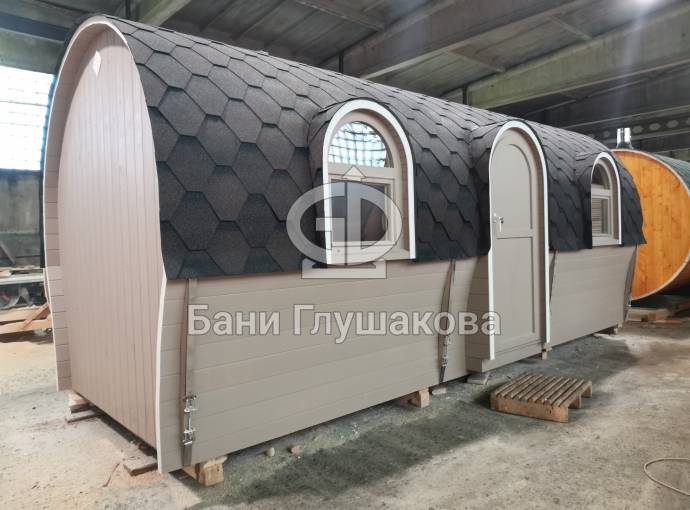 Баня «Сундучок» из бочковой доски с душем
