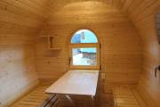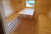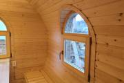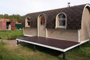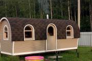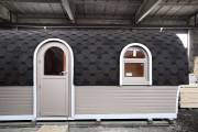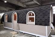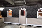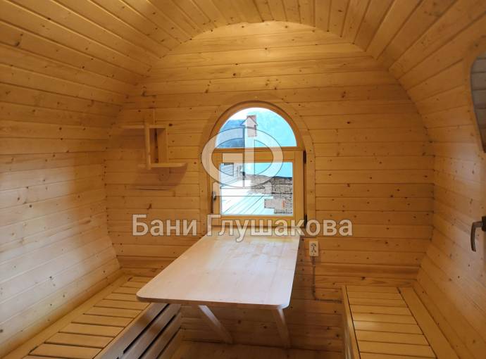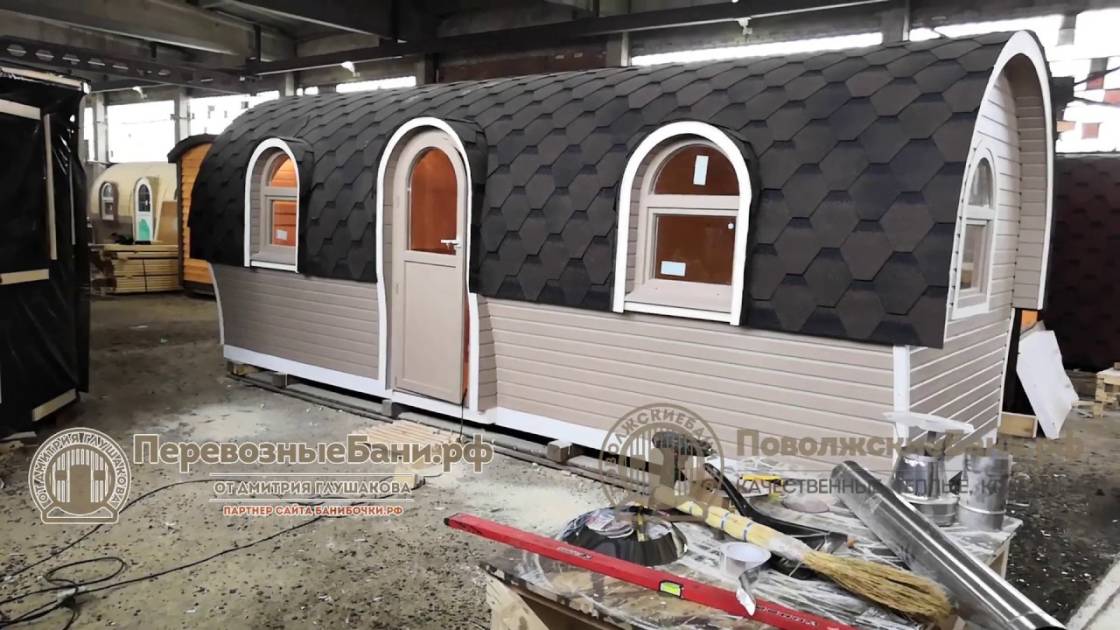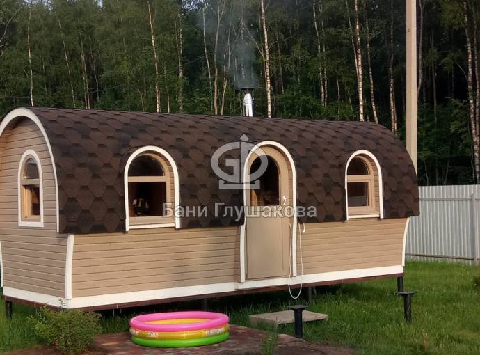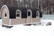 В настоящий момент изготавливаем баню «Сундучок» с душем как на фото. Она будет увеличенной длины по основанию до 6 метров. Будет установлена дополнительная комплектация в виде различных элементов (полочки, спинка для полога, удлиненная скамейка и пр.).