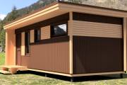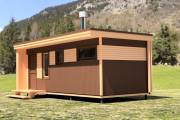 Переосмыслили стандартный проект перевозной бани в виде вагончика. Форма идеально подходит для отделки планкеном, она буквально оживает, приобретая контрастный динамический рисунок.