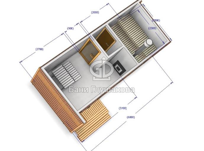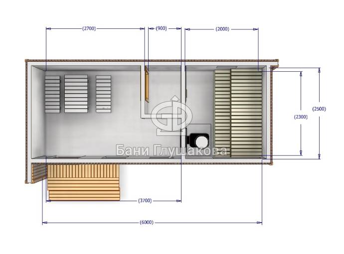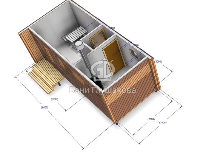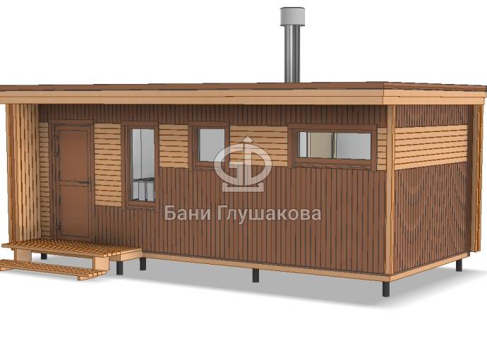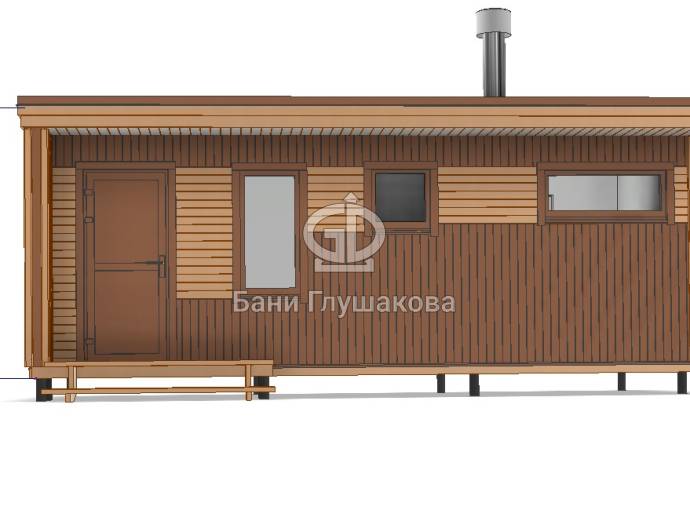 Размер бани 2,5 на 6 метров — это стационарный вариант, сборка возможна только на участке. Однако в линейке «Кубота» есть также проекты для строительства перевозных бань со сборкой в цеху.