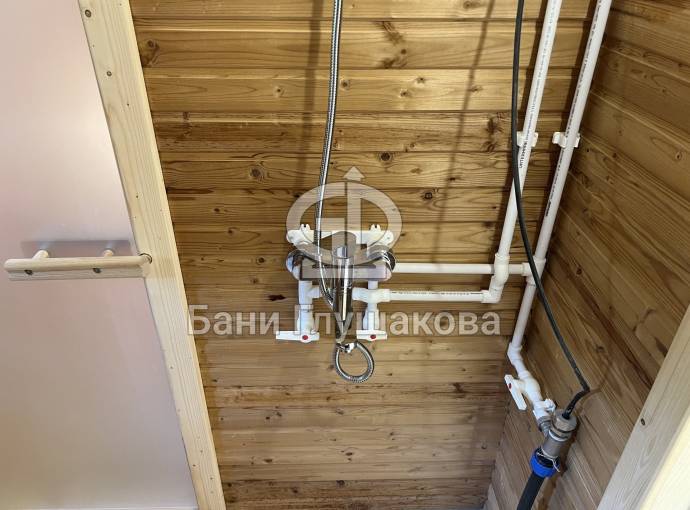 Баня оснащается автономной душевой системой (водопровод не обязателен!).