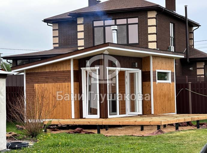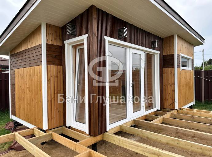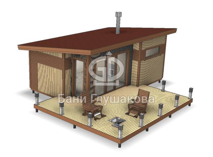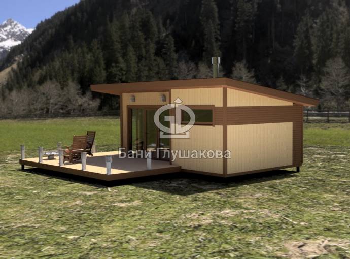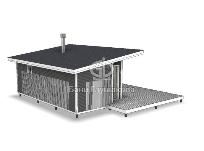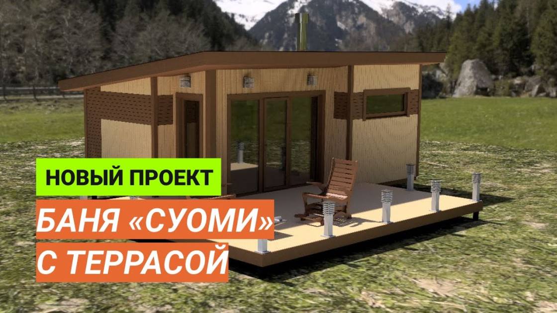 Каркасная баня «Суоми» 4х6,5 с террасой