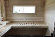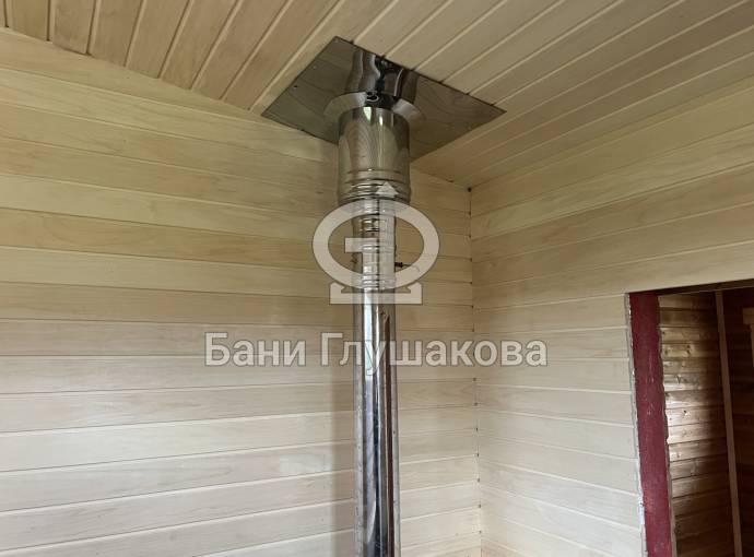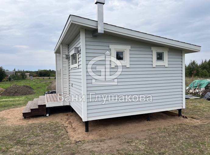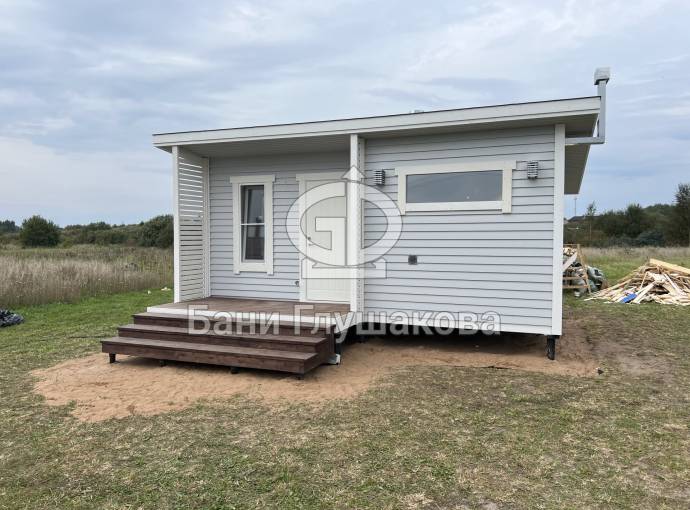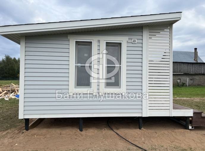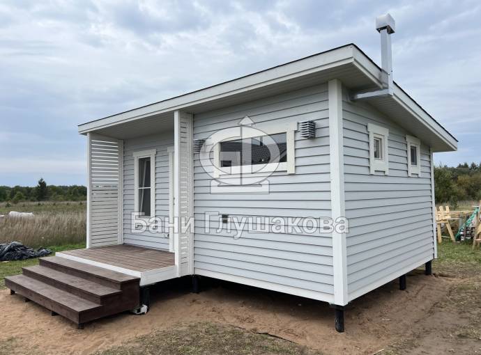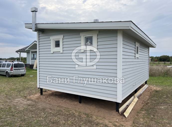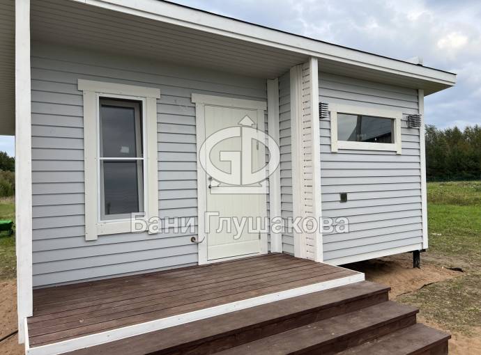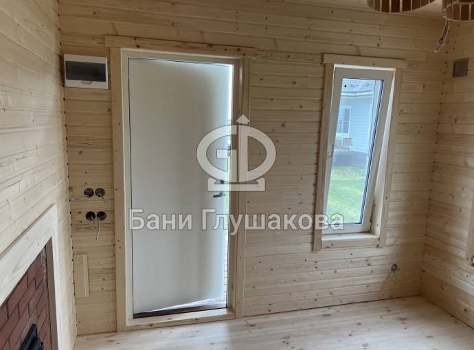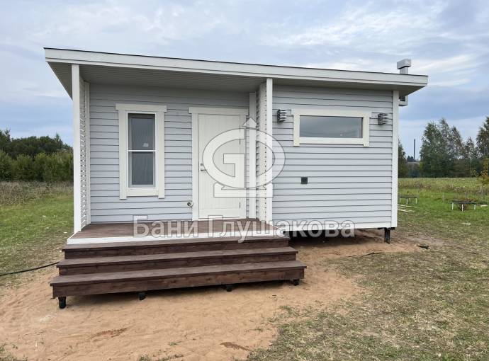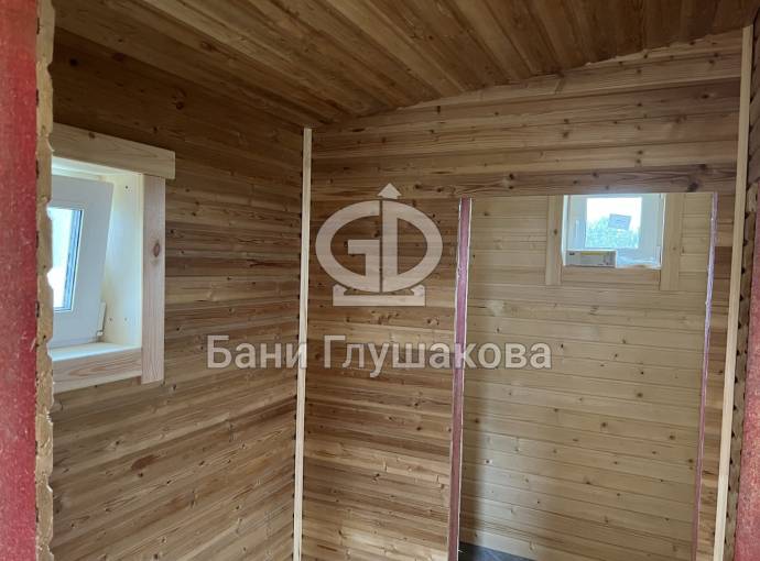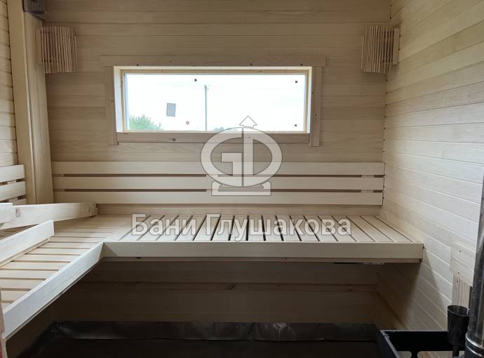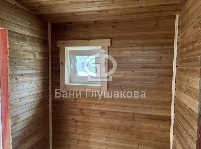 Внутри 4 помещения: комната отдыха, парная, душевое помещение и бойлерная. Площадь позволяет организовать полноценный санузел.