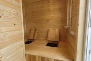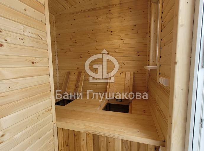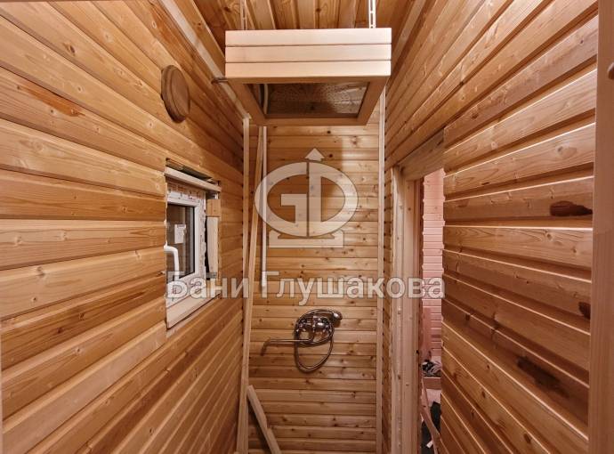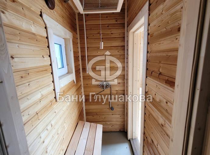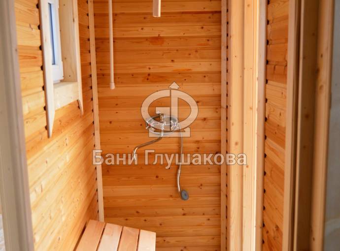 • Помывочная и обливное устройство: В помывочной установлена современная душевая система, а также предусмотрено обливное устройство для любителей контрастных процедур, что делает процесс омовения максимально комфортным и приятным.