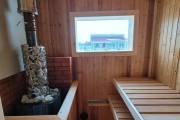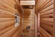 • Размеры и дизайн: Баня размером 6x2,5 метра представляет собой идеальное сочетание функциональности и стиля. Односкатная крыша не только подчеркивает скандинавский дизайн, но и обеспечивает дополнительную защиту от атмосферных осадков.