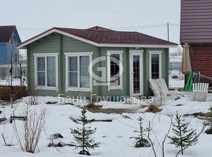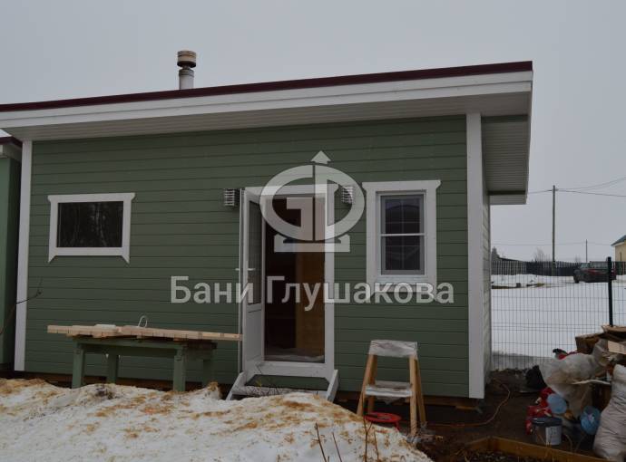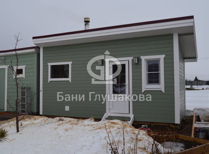 Новинка в линейке «Суоми» от Дмитрия Глушакова: Современная каркасная баня в скандинавском стиле с односкатной крышей.