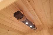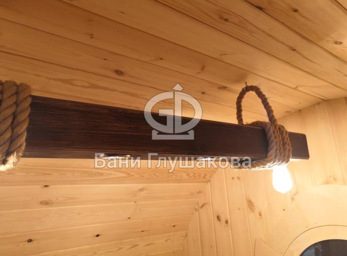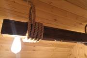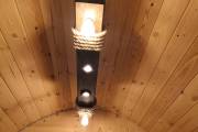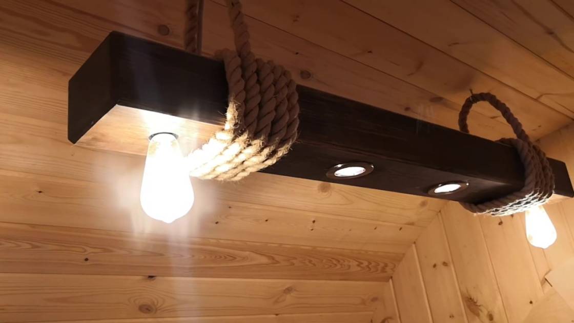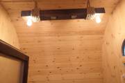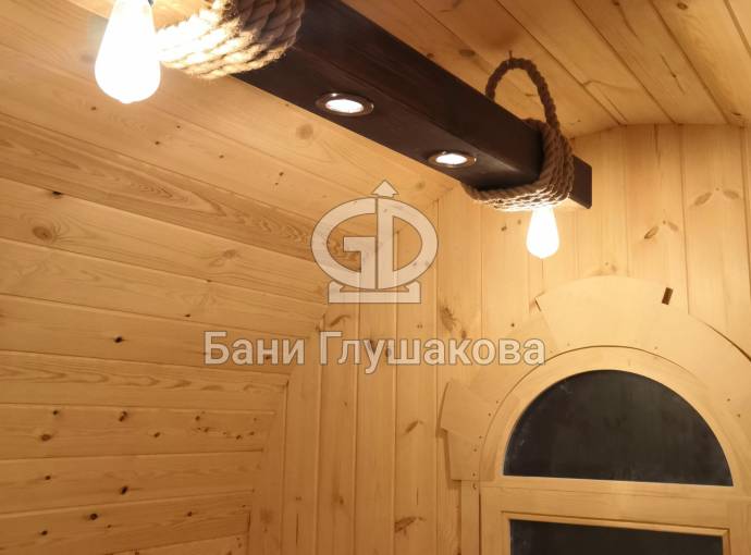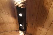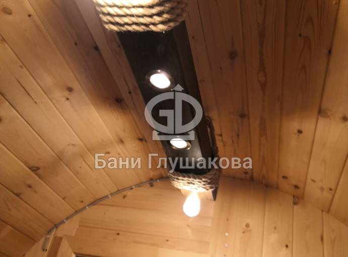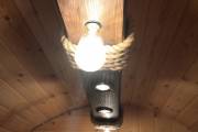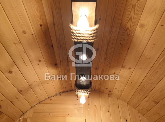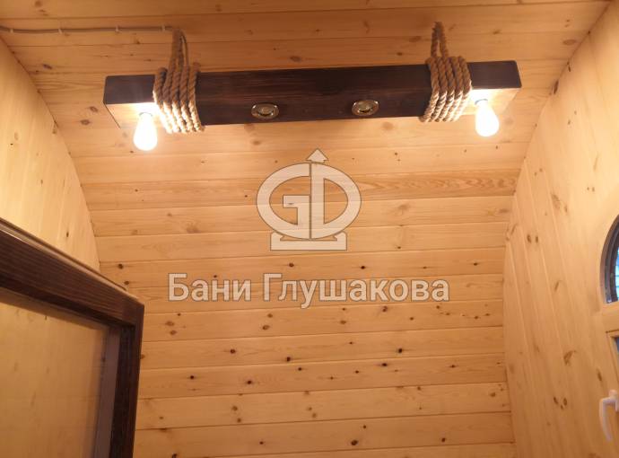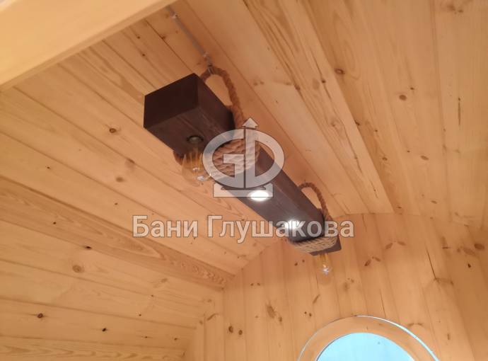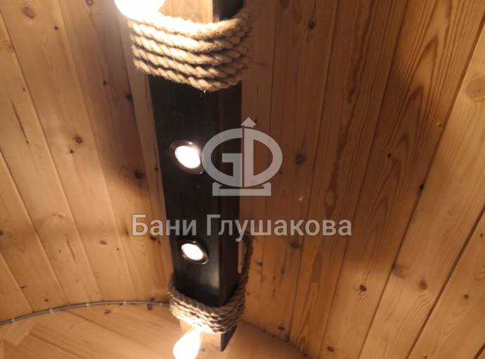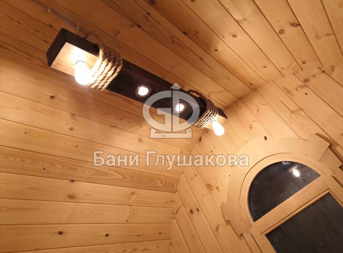 Эту люстру можно установить не во все бани — надо учитывать тот нюанс, что «Брусина» свисает на 35 см от потолка с учетом ламп. Ее, конечно, можно закрепить непосредственно на потолок — тогда она будет висеть чуть выше.