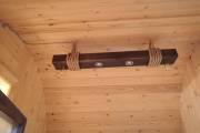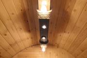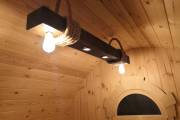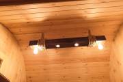Люстра «Брусина» — деревянный потолочный светильник ручной работы для бани и дачи.