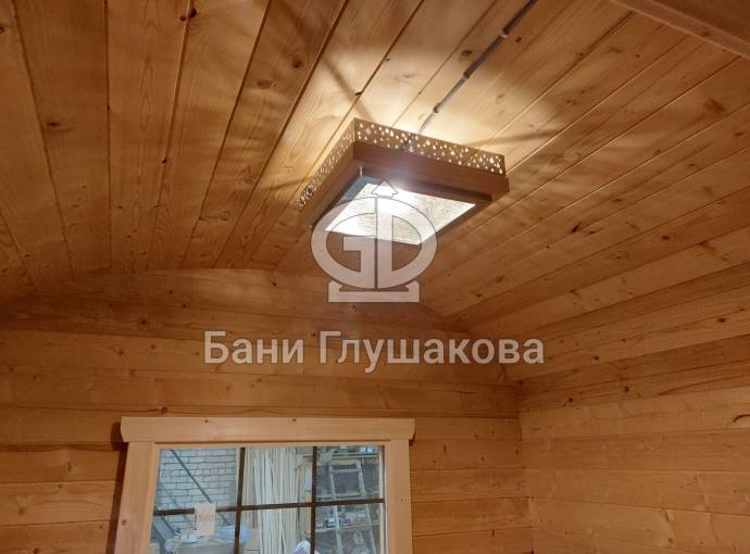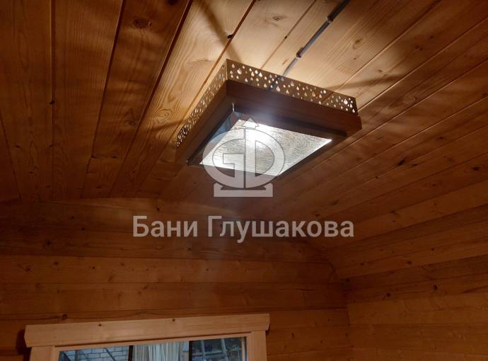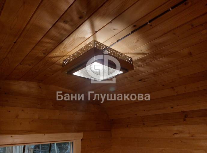 Не входит в базовую комплектацию. Такую люстру можно заказать отдельно при составлении договора на покупку бани.
