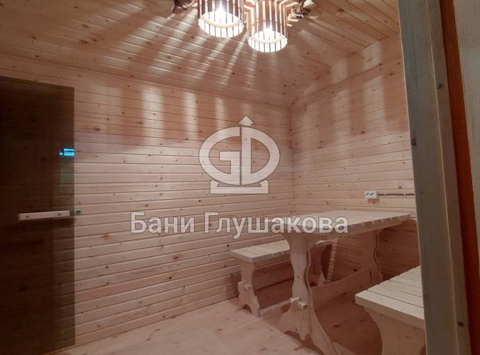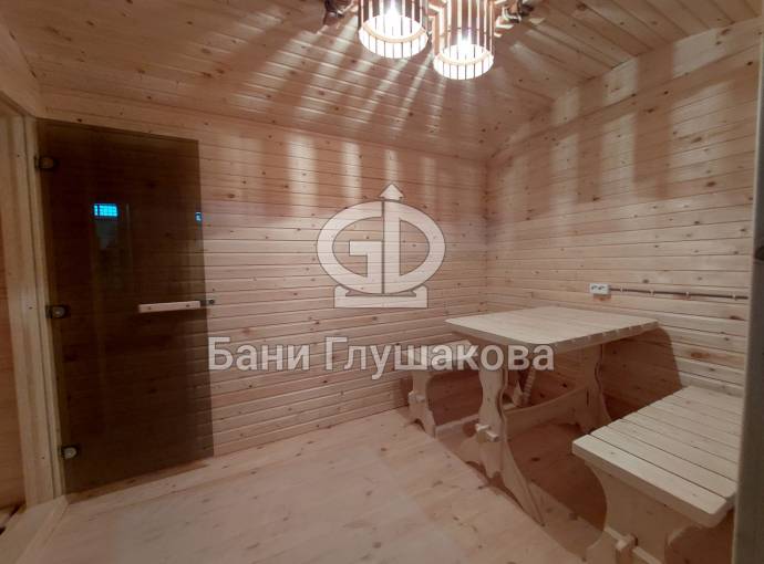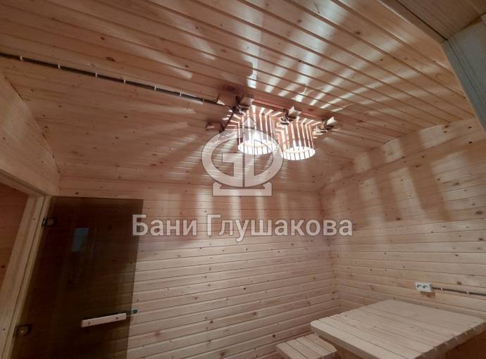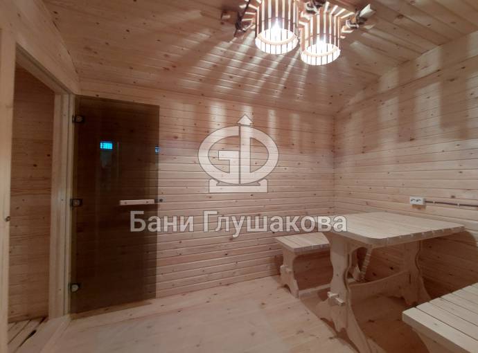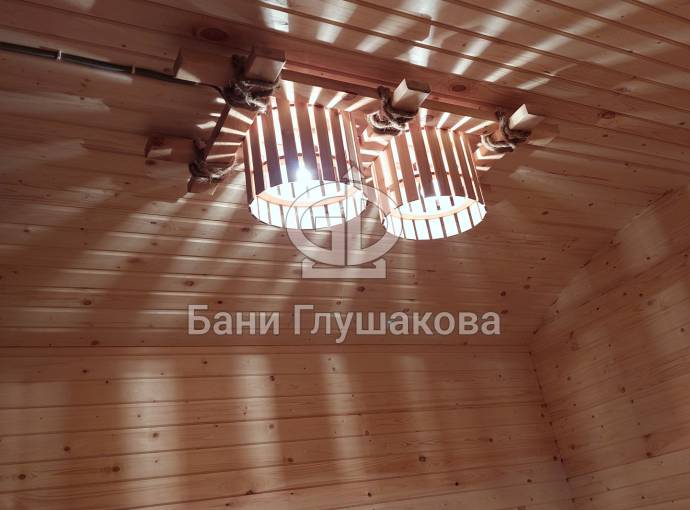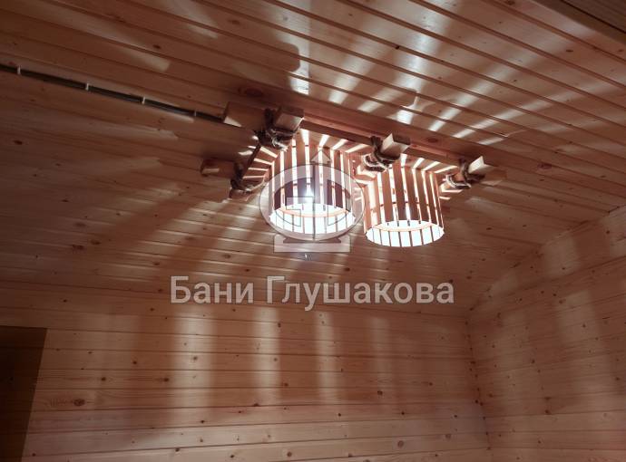 Не входит в базовую комплектацию. Такую люстру можно заказать отдельно при составлении договора на покупку бани.