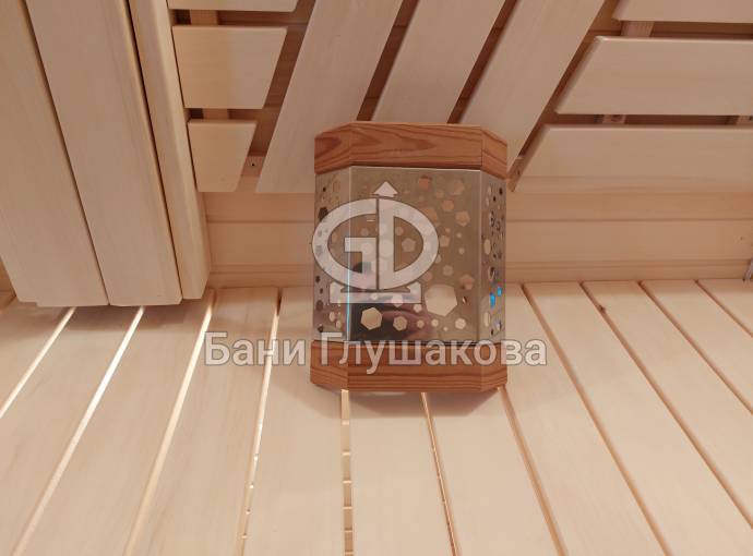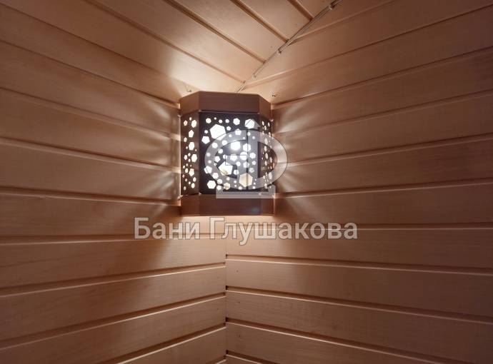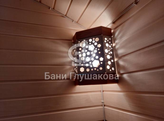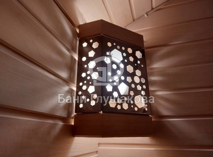 Светильник для сауны угловой «Многоугольники» металлический с элементами из термодревесины