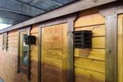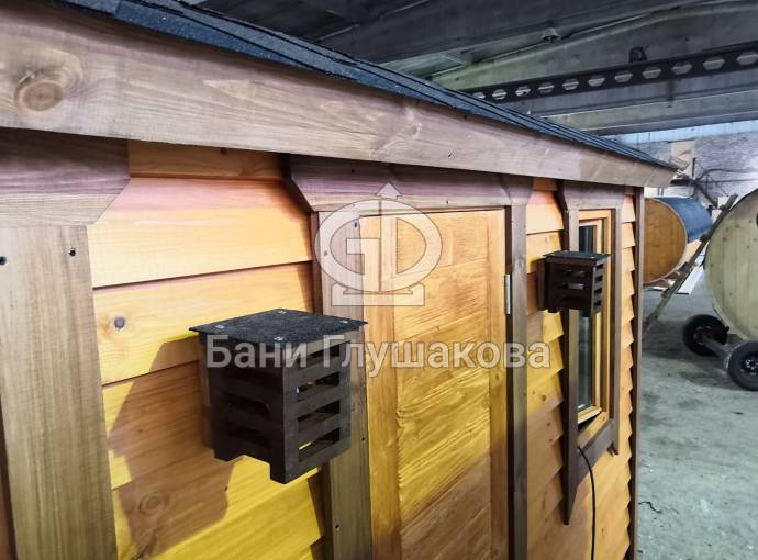 Устанавливаются практически на все наши бани, в том числе бани бочки. Но вы должны понимать, что дверь может упираться в светильник, поэтому нужно поставить ограничитель. Мы работаем над улучшением нашей продукции, но пока еще не пробовали ставить ограничитель на бани.