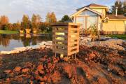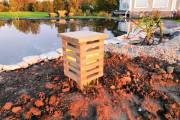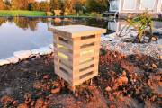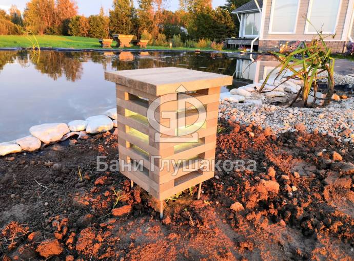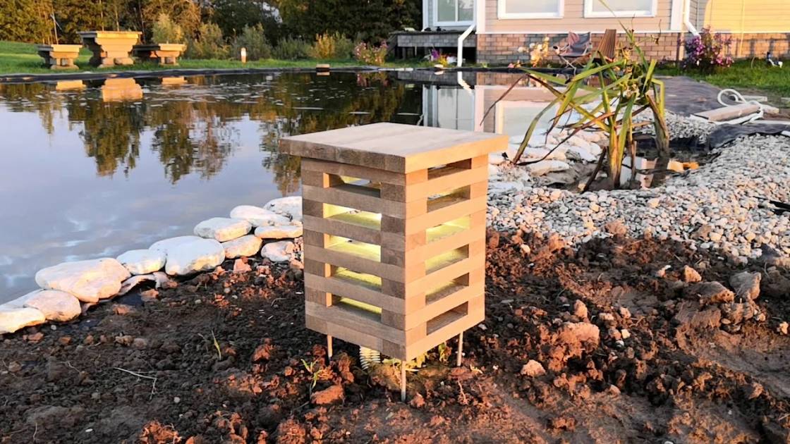 Садовый светильник «Хай-Тек» сделан из деревянных реечек и напоминает собой элемент современной архитектуры. Благодаря своей конструкции создает красивый рассеивающий свет эффект в темное время суток. Устанавливается на металлические шпильки — при необходимости их длину можно регулировать. Очень удобно при неровном грунте. Фонарь протестирован и одобрен нами лично.