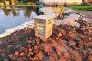Досочка с намеченными отверстиями для вбивания шпилек в землю