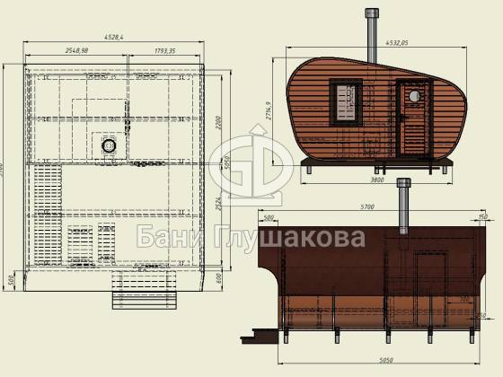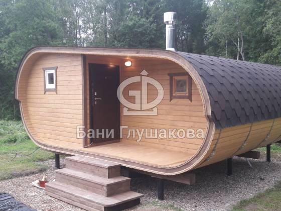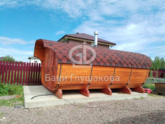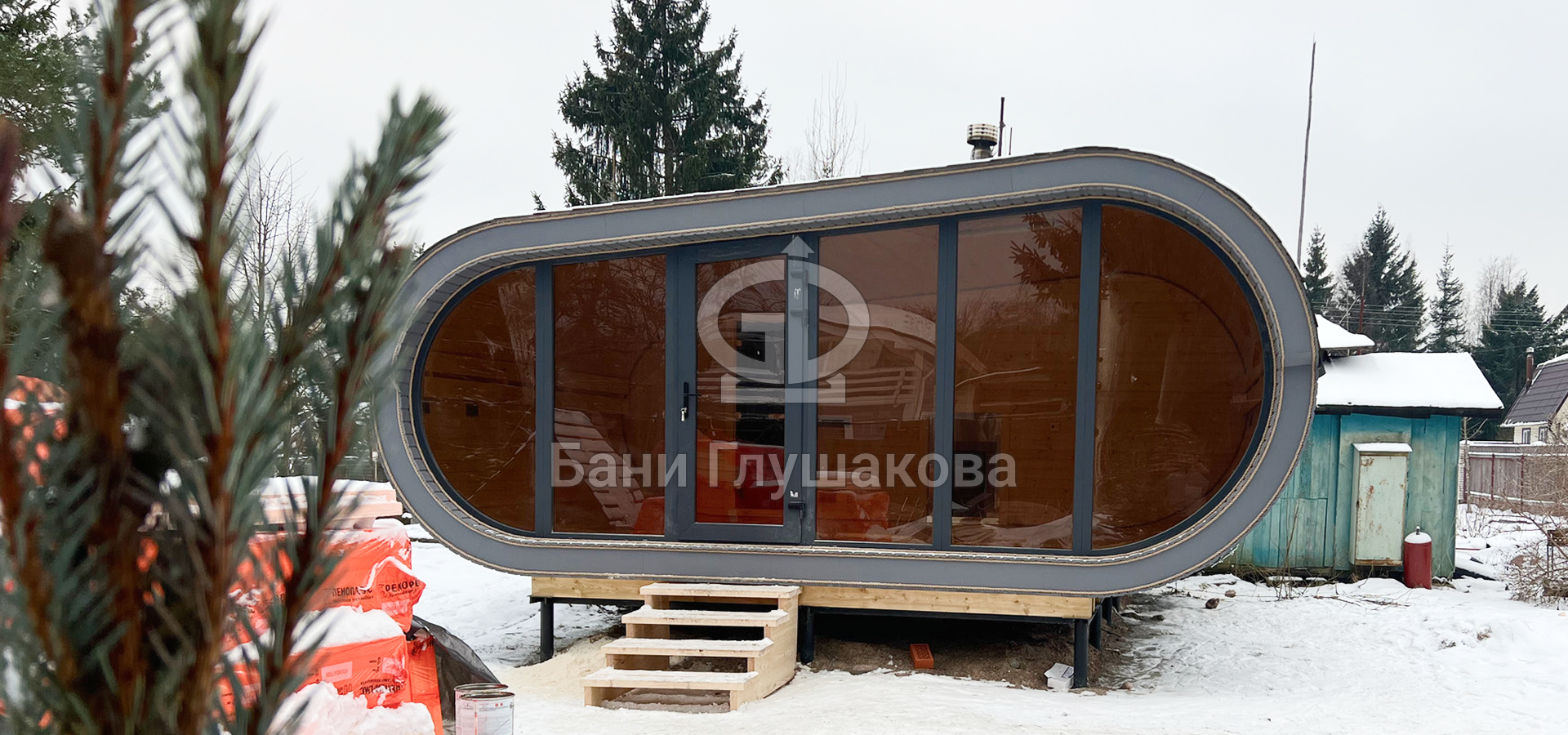 Линейка перевозных бань «Танк» являет собой сотрудничество строительной компании и клиента. В 2015 году к нам поступил запрос на индивидуальную разработку проекта мобильной бани каркасной сборки в виде... гусеницы танка. Ну, чего в жизни не бывает, любой каприз за ваши деньги. В процессе разработки мы все больше убеждались в жизнеспособности проекта. Первая баня вида «Танк» получилась очень красивой, удобной (в отличии от бань бочек она обладает более привычной конфигурацией) и по-настоящему оригинальной.