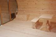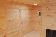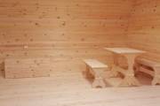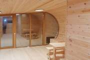 Планировка нестандартная. В бане 3 помещения: очень большая комната отдыха, парная и санузел, где расположены душ и туалет.