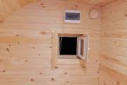 Можно заказать установку окон (только в каркасные варианты) размером 1470х570, открывающиеся если замена окна то +2500р а если дополнительное окно то +5000р, пример такой бани на видео