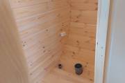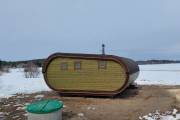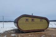 Баня изготовлена по каркасной технологии. Размер 6х6 метров + терраса 2,7х6. Внутри комната отдыха с кухонной зоной, парная, душевая, санузел.
