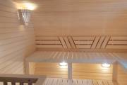 Можно установить один или более светильник у входной двери снаружи, подробнее по ссылке, в комплект входит покраска его в цвет окантовки бани, подключение на отдельный выключатель, светодиодная лампа. Стоимость 1700 рублей за штуку