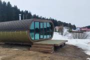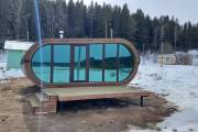 Можно заказать установку окон (только в каркасные варианты) размером 1470х570, открывающиеся если замена окна то +2500р а если дополнительное окно то +5000р, пример такой бани на видео