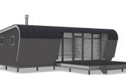 Объекты такого типа строятся по каркасной технологии. Степень утепления может быть любой: можно построить как летний, так и зимний вариант. При этом не переживайте, что в холодное время года из-за панорамного остекления будет уходить тепло. Стеклопакеты дорогие, надёжные, энергосберегающие. Подобные гостевые домики мы ни раз строили для баз отдыха.