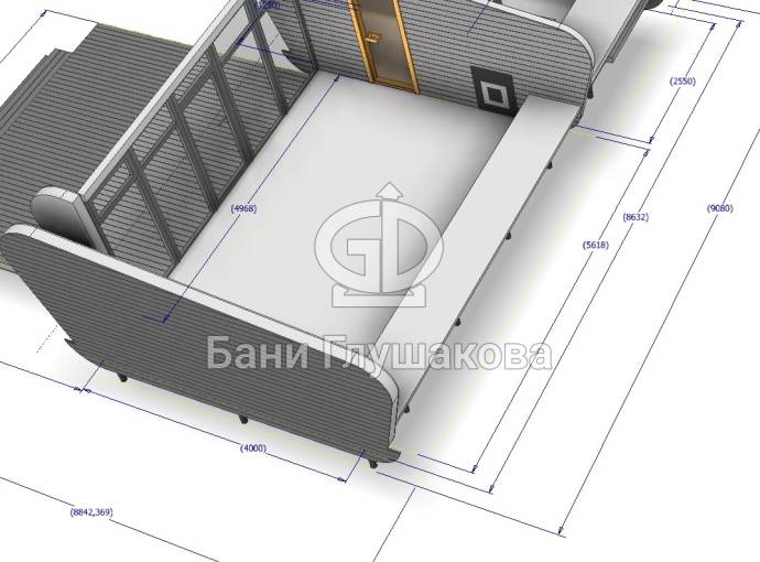 При желании построить баню Танк просьба с изменениями обращаться непосредственно к Дмитрию Глушакову и ваш проект будет визуализирован и спроектирован под требования конструкции